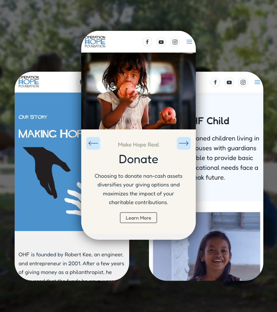 A clean, user-friendly website that’s easy to navigate and builds trust while supporting OHF’s mission to make hope real.